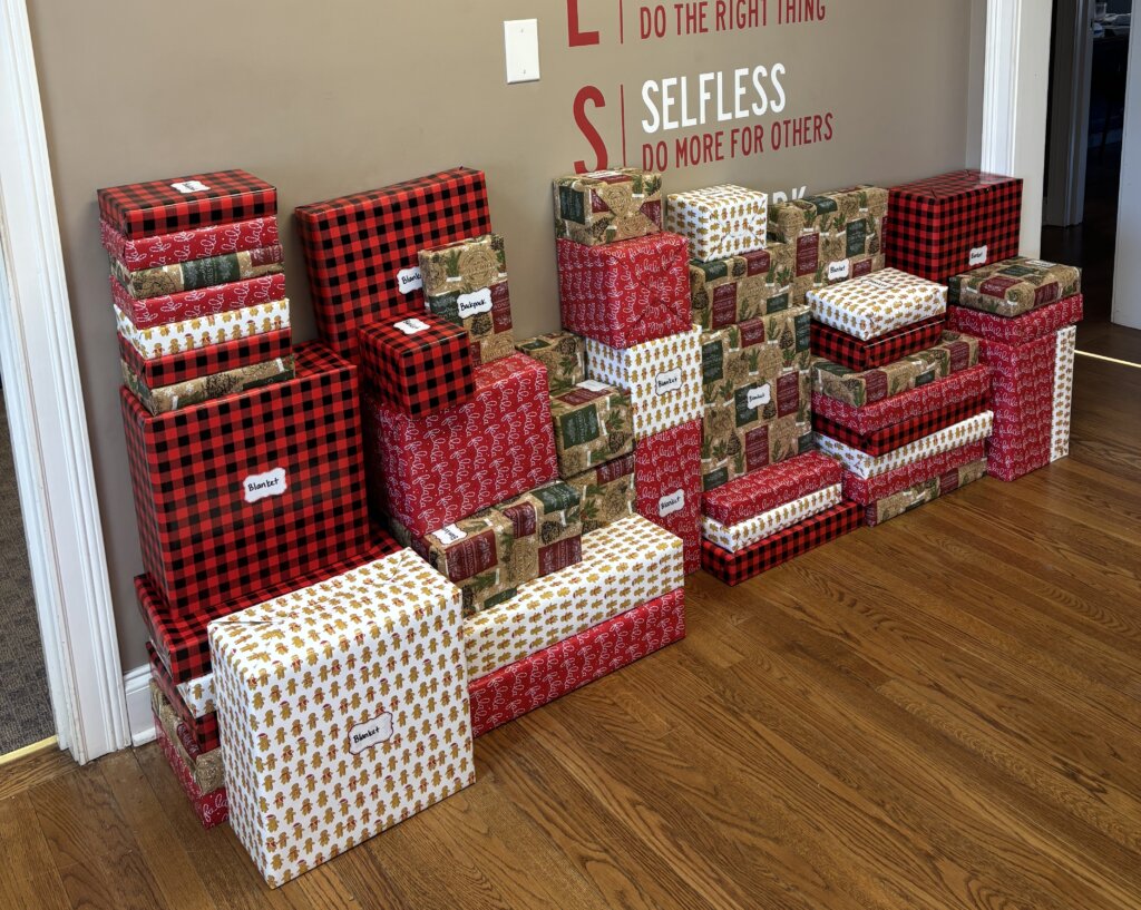 With that guidance, Kelsey pulled together a holiday drive with a thoughtful twist. She shared an Amazon wish list with OPC team members and a few community contacts. This brought in generous donations, including several anonymous ones. A donation tote outside the Bowling Green office filled twice with after-hours and weekend drop-offs, and the branch supplied wrapping materials so every item could be delivered during the week of Christmas.